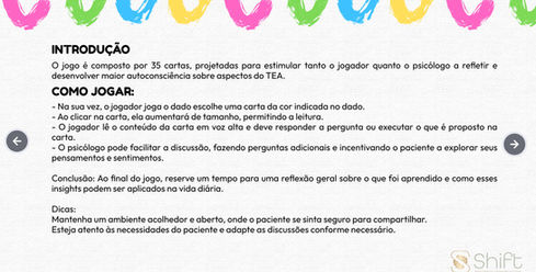 Este jogo online de autoconhecimento para autistas é ideal para adolescentes explorarem mais sobre si mesmos em uma plataforma interativa e envolvente. Com perguntas que promovem reflexões sobre identidade, sentimentos, interesses e comportamentos, facilitando o entendimento de si mesmo e a autocompreensão em um ambiente seguro, , o jogo inclui tarefas com estratégias de enfrentamento. Com uma interface intuitiva, é uma ferramenta que auxilia psicólogos que trabalham com jovens no espectro autista.